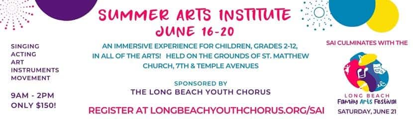 Long Beach – The Long Beach Youth Chorus Summer Arts Institute lets kids and teens (grades 2-12) explore diverse artistic and cultural traditions through dance, music, visual arts, and choral singing, culminating in a live performance at the Long Beach Family Arts Festival. June 16-21, 2025. Read More