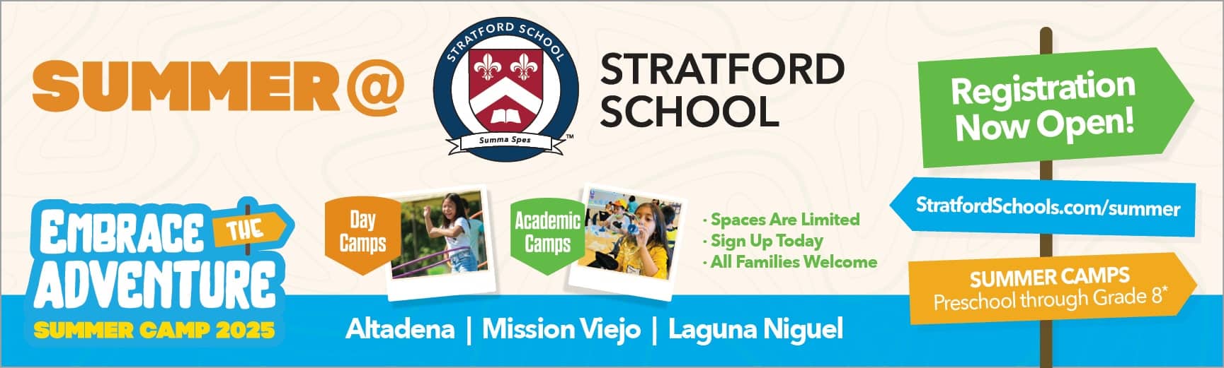 Mission Viejo, Laguna Niguel & Altadena – Summer @ Stratford School lets kids (grades 1-5) dive into STEAM, arts, team-building, and outdoor adventures, while academic camps offer focused learning in math, robotics, and literature. June 3 – August , 2025. Read More