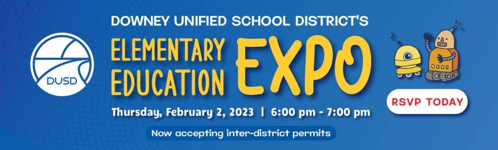 You’re invited to Downey Unified School District’s Elementary Education Expo! Discover how DUSD offers its students the best through programs encouraging innovation, critical thinking and creativity.
