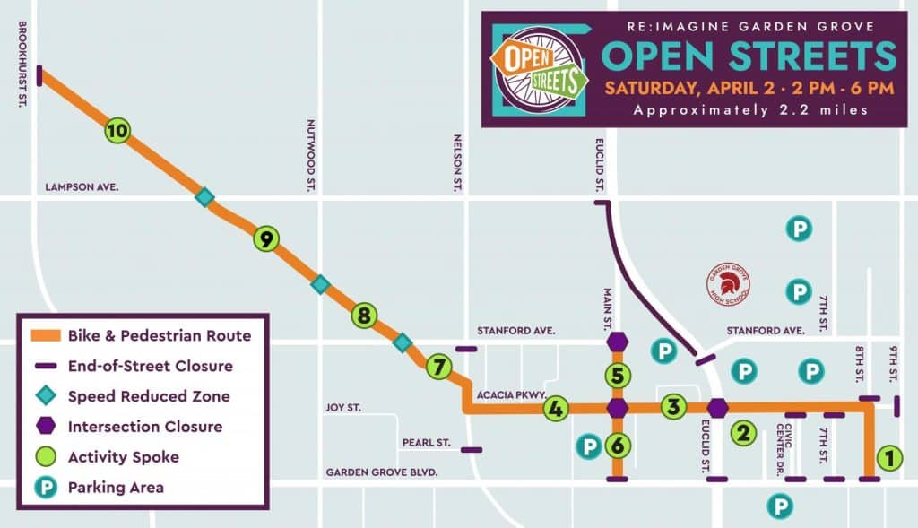 Garden Grove streets turn car-free to walk, bike, and ride! Open Streets is the perfect opportunity to stroll your way through an afternoon of free activities.