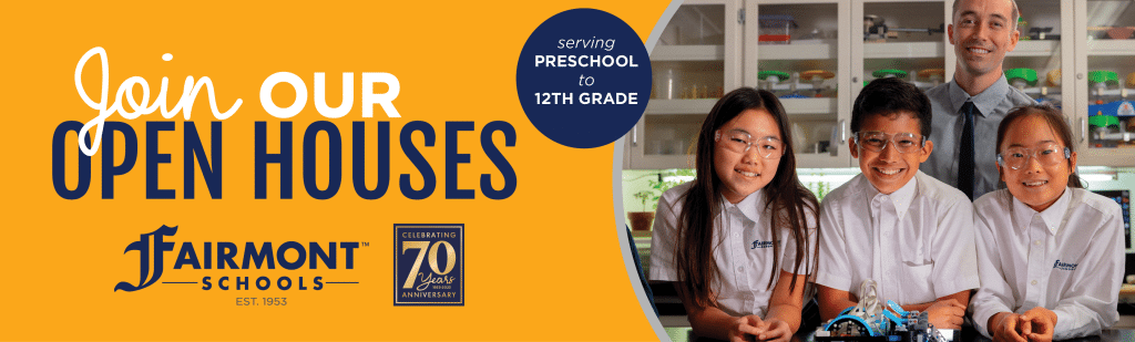 Join Fairmont Schools at one of their upcoming Open House events to learn more about academic programs, co-curricular and extracurricular opportunities, and the social and emotional support their nurturing community provides.