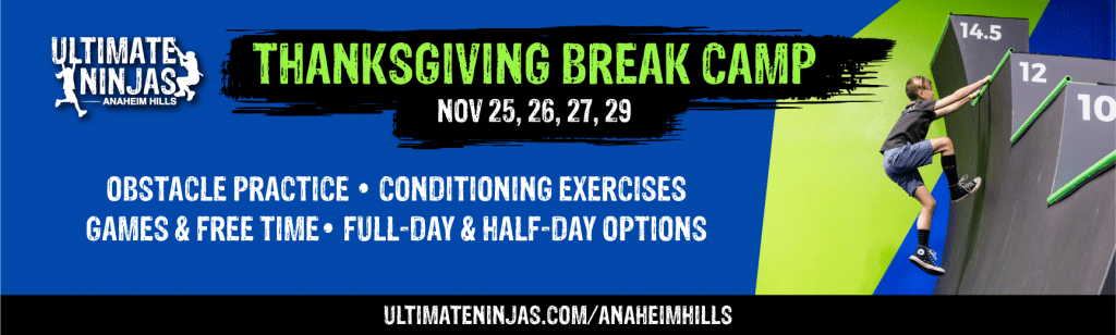 Ultimate Ninjas offers the ultimate Thanksgiving Break Camp! Ninjas learn how to tackle obstacles with structured obstacle practice, participate in conditioning exercises, plus play games and enjoy free time.