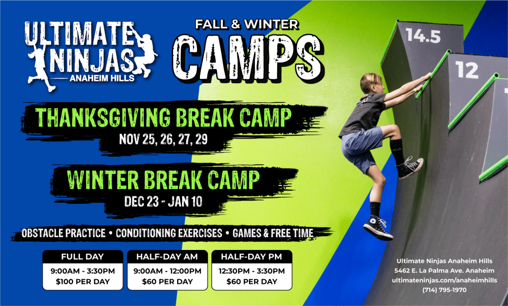 Ultimate Ninjas offers the ultimate Winter Break Camp! Ninjas learn how to tackle obstacles with structured obstacle practice, participate in conditioning exercises, plus play games and enjoy free time.