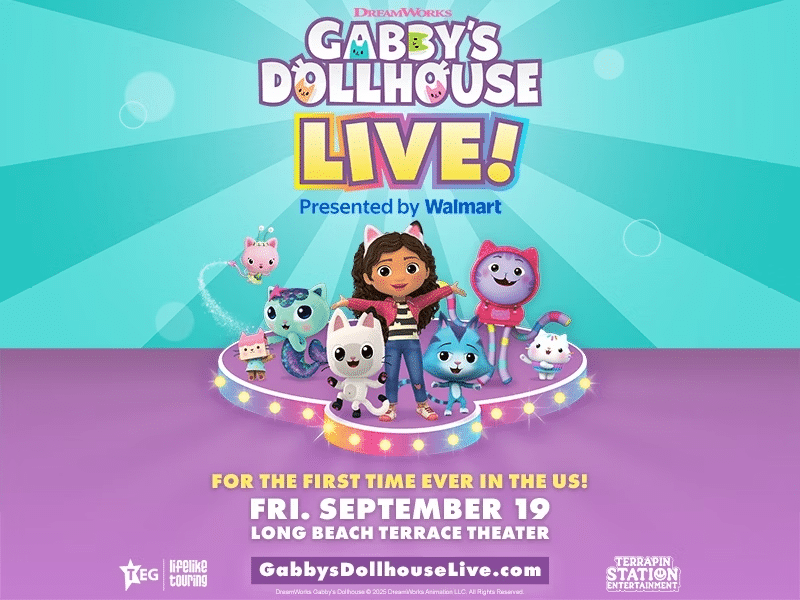 On Friday, September 19, 2025, the Long Beach Terrace Theater hosts Gabby’s Dollhouse Live!