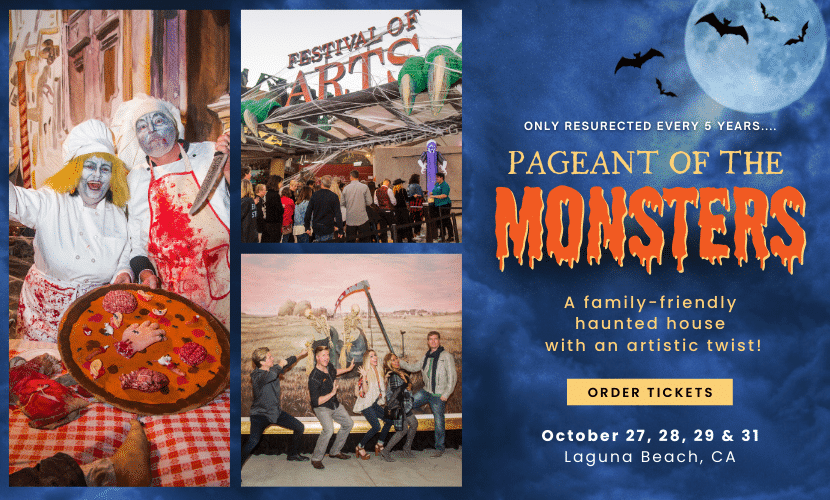 Only resurrected every 5 years, the Pageant of the Monsters is clawing its way back to Laguna Beach! Presented by the Festival of Arts and Pageant of the Masters, this monstrously delightful Halloween event transforms the Pageant’s backstage into a family-friendly haunted house with an artistic twist.