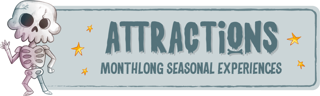 Trick-or-treat at themed stations, play magical carnival games, and watch the Wonders of Wizardry stage show. Explore mazes, ride tractor trails, launch pumpkins, and join the costume contest. Don’t miss the new escape room challenge and Día de los Muertos ofrenda.