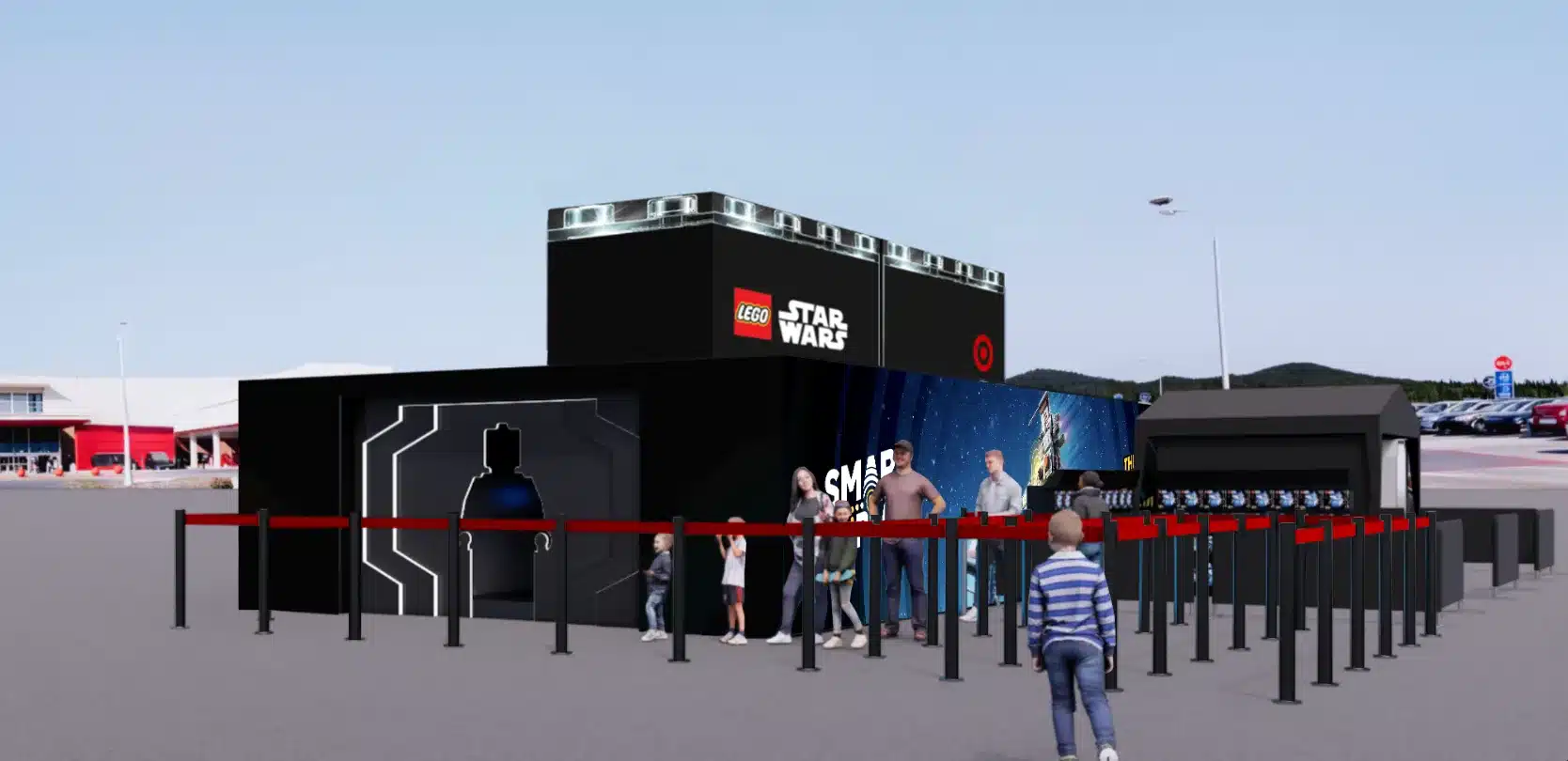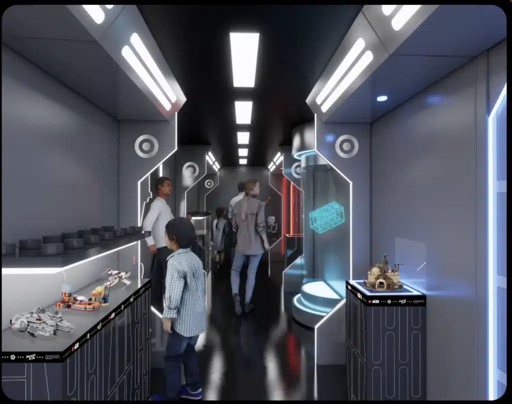 It’s a one-day interactive experience set up right in the Target parking lot at La Cienega — free to attend, no ticket needed. Families get a first look at LEGO’s most ambitious tech launch in decades, wrapped inside a Star Wars-themed playground.