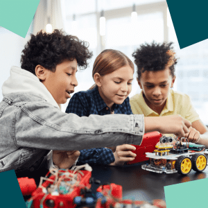 Throughout each week, campers dive into creative projects like robotics and design challenges, stay active through sports and outdoor movement, and engage in collaborative play, building confidence and new friendships along the way.