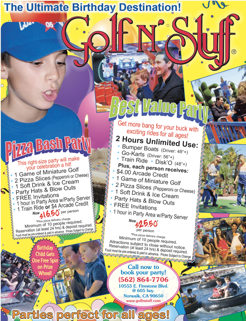 Have your child’s next birthday party, team party or scouting event at Golf N’ Stuff Family Fun Park!