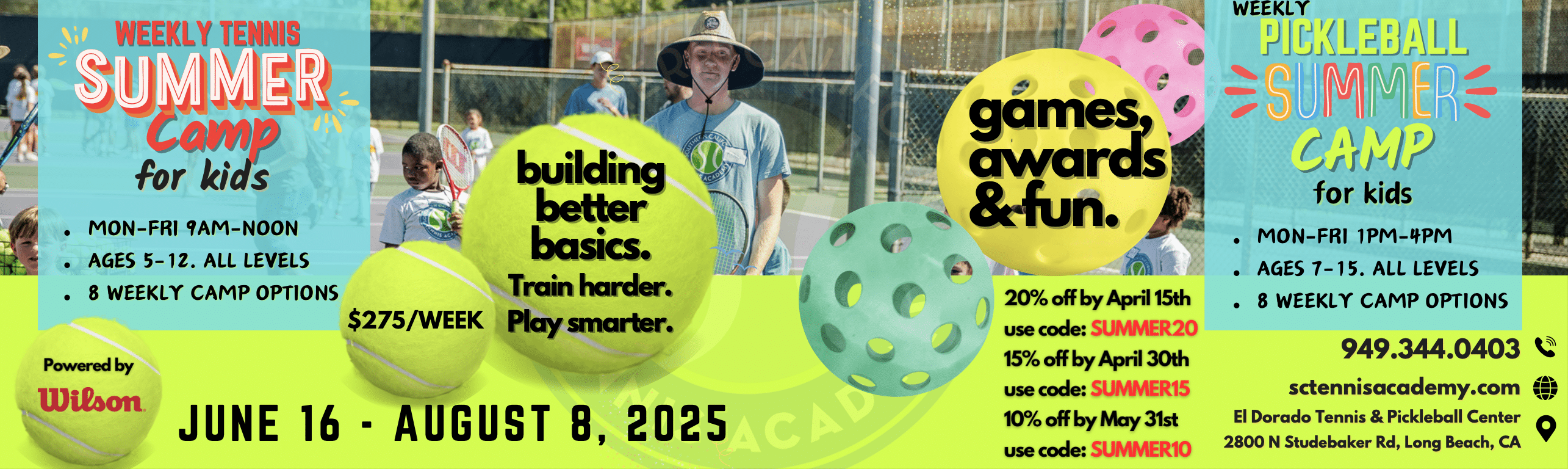 Swing into Summer with SCTA Camps! Join action-packed Tennis and Pickleball Camps, June 16 – August 8.