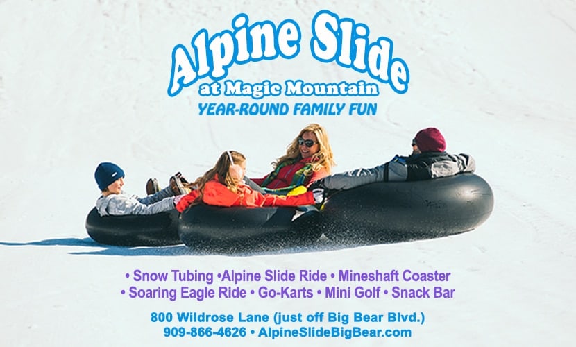 The Magic Mountain Recreation Area in Big Bear Lake is home to the world-famous Alpine Slide — Southern California’s only authentic bobsled experience. Riders navigate their own individually-controlled sleds, down cement tracks filled with high-banked turns and long straightaways. Check out their Mineshaft Coaster, a mountain coaster where you control the speed down a mile long track. There’s also a variety of other attractions including snow tubing.