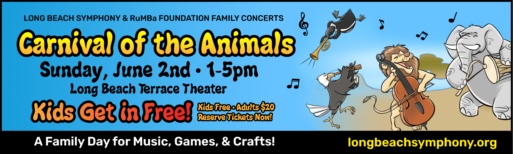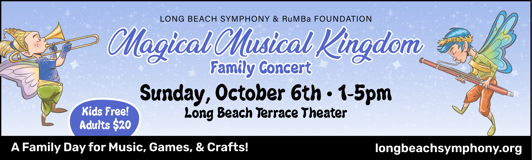OCTOBER 6: Children and their families will enjoy an afternoon of music, dance, crafts, and interactive activities as Long Beach Symphony presents the RuMBa Foundation Family Concert, A Magical Musical Kingdom at the Terrace Theater and Plaza. And thanks to the Rumba Foundation of Long Beach, KIDS GET IN FREE!