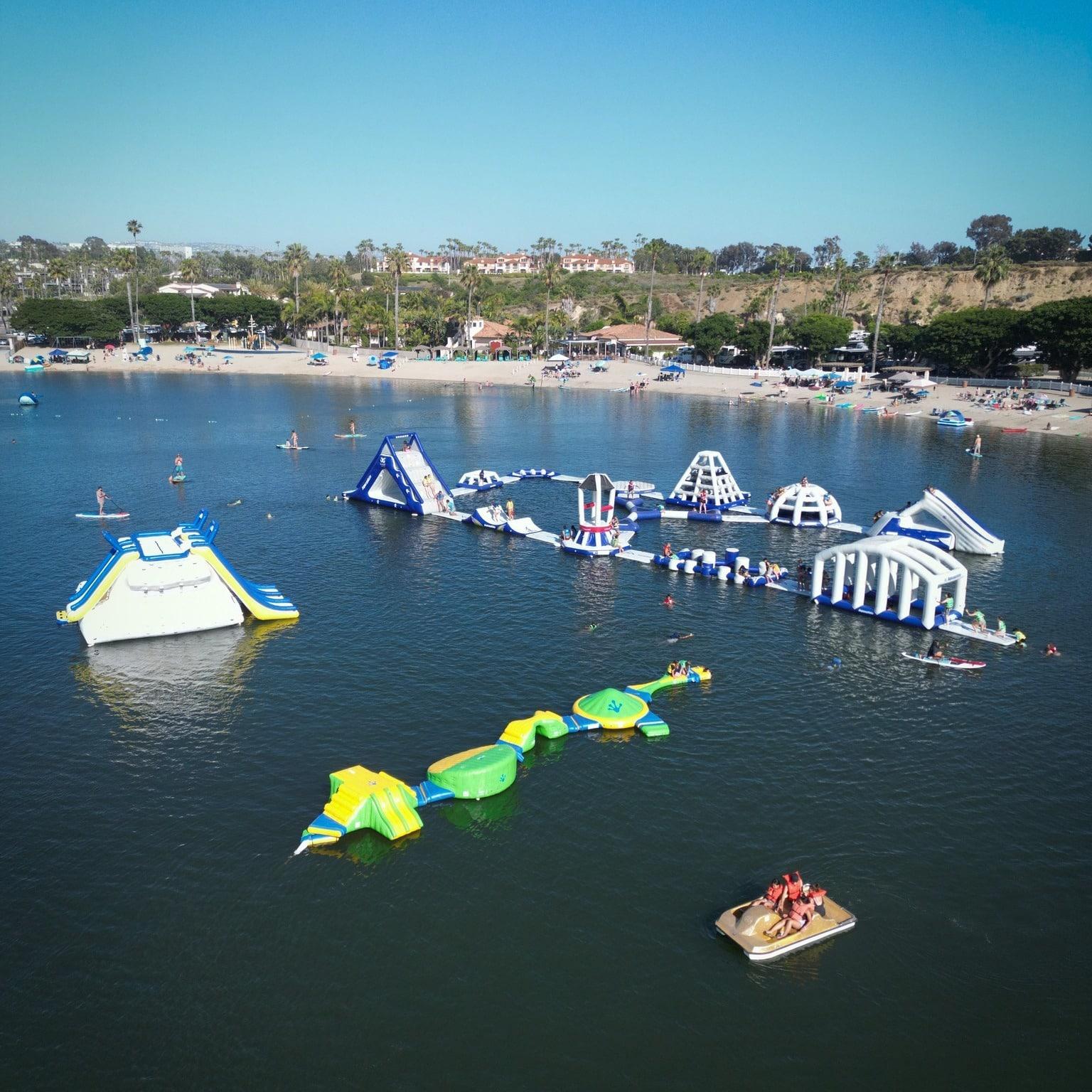 The Newport Dunes Waterfront Resort & Marina boasts a large fleet of floating inflatables and watercraft rentals inside a secluded, tranquil bay. There’s over 30 oversized inflatables including challenging jungle gym, monkey bars, bouncers, and more. The aquatic park is open to resort guests and visitors.