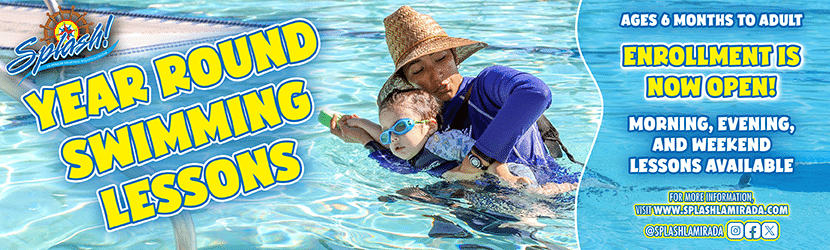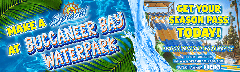 The La Mirada Regional Aquatics Center has two sides: one side features two year-round pools used for swim lessons and competition, the other side is Splash! Buccaneer Bay, a seasonal pirate-themed water park.